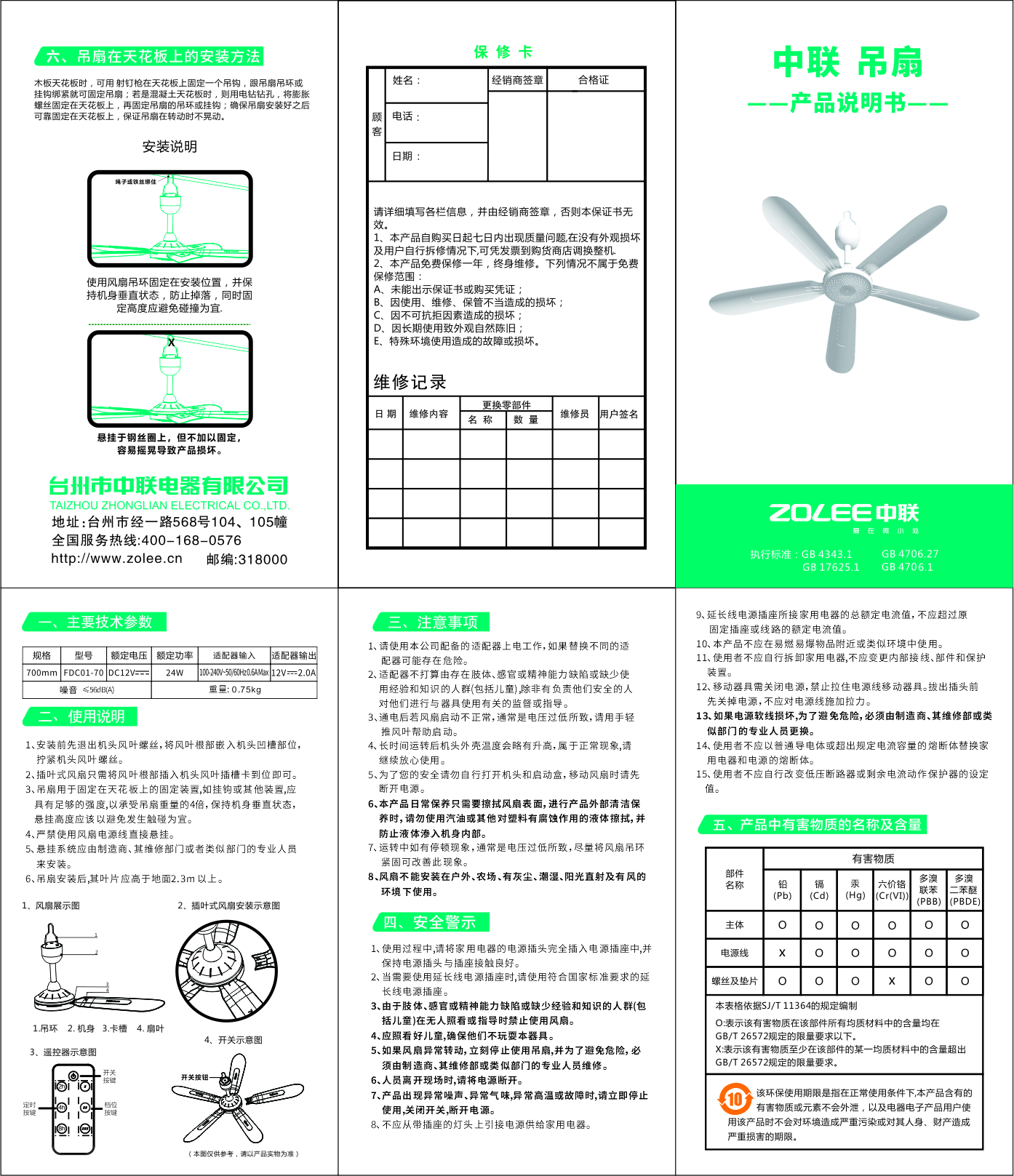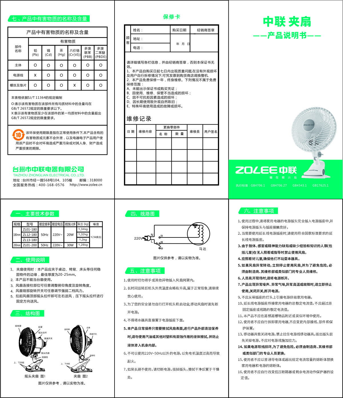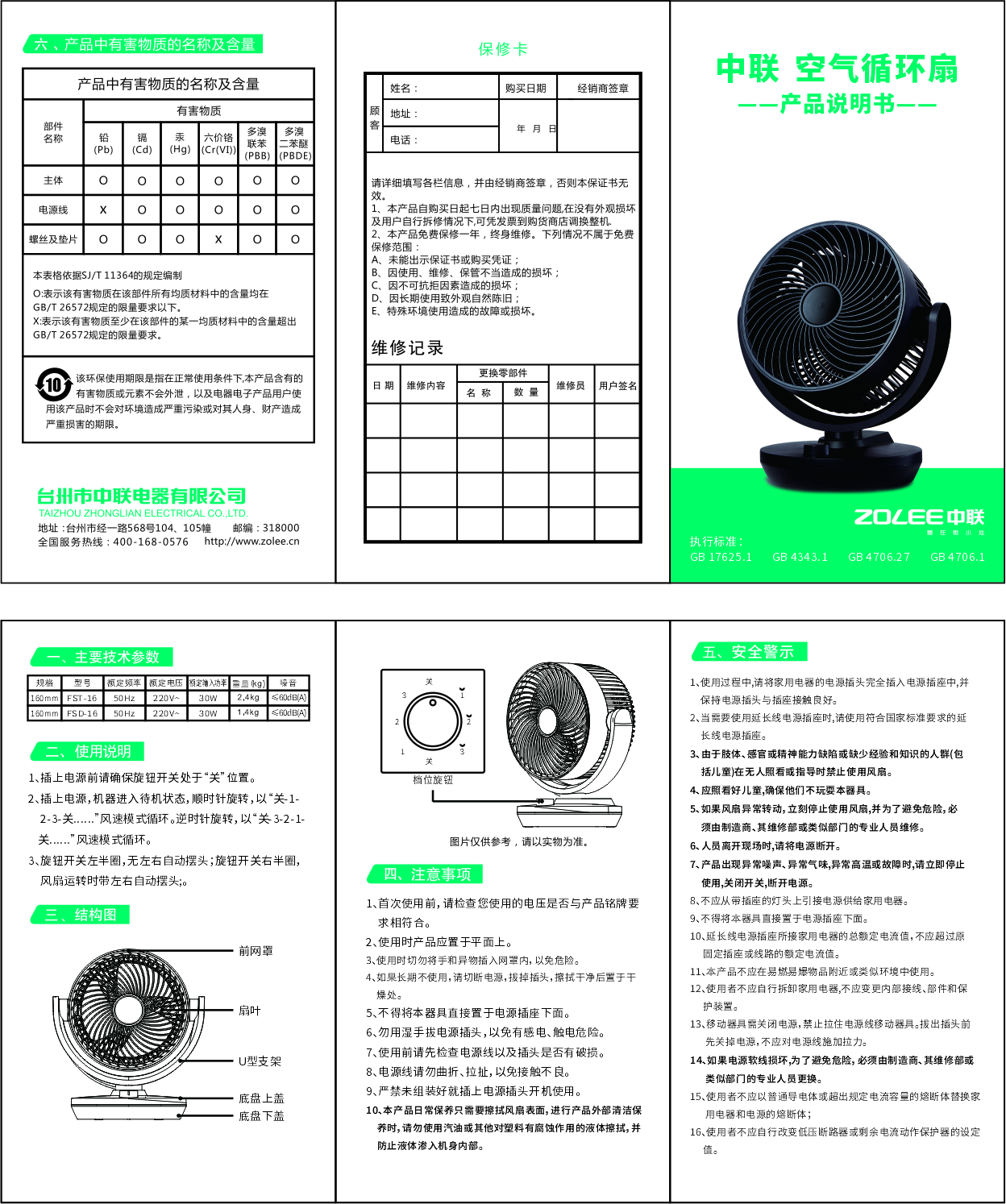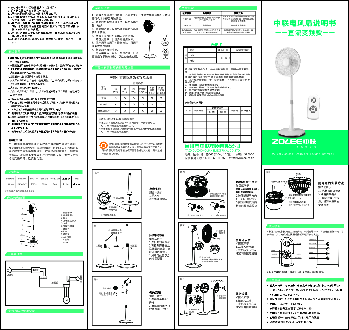 無(wú)網(wǎng)罩落地扇說(shuō)明書